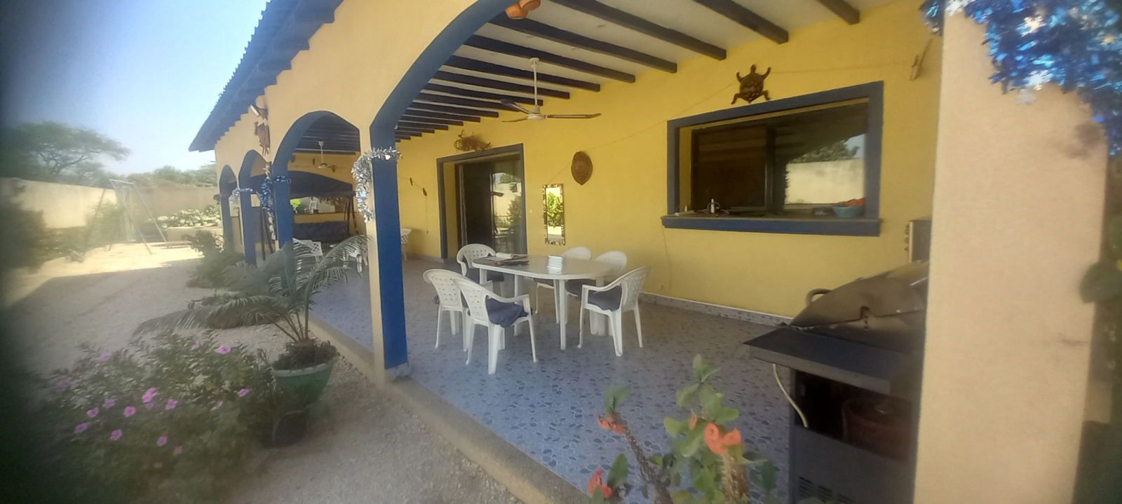 villa avec piscine solaire composée de 3 chambres avec chacune sa salle d'eau, d'un salon séjour, salle à manger, d'une cuisine équipée, d'une terrasse aménagée, d'une dépendance, d'un garage, d'un équipement solaire de 6 batteries et surpresseur et d'un bâtiment composé de 4 logements de 60m² chacun avec 1 chambre et salle d'eau , une cuisine équipée , un salon terrasse. A la location rapport 1500 euros par mois . Au prix de 297 500 €.