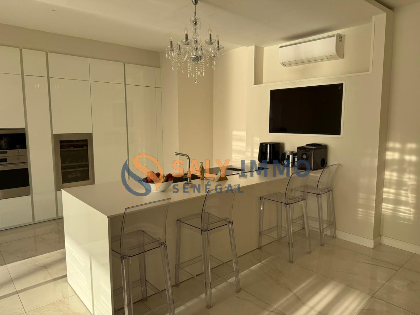 Composition•3 chambres, dont :•1 penthouse d’exception avec jacuzzi privé•2 cuisines modernes et entièrement équipées•2 chambres du personnel•Ascenseur desservant tous les niveaux•Garage•Piscine chauffée grâce à un système solaire•Adoucisseur d’eau•Groupe électrogène
