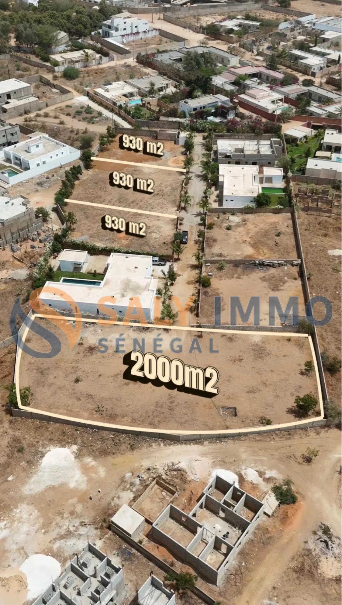 - 3 terrains de 930 m² à 48 600 000 FCFA chacun