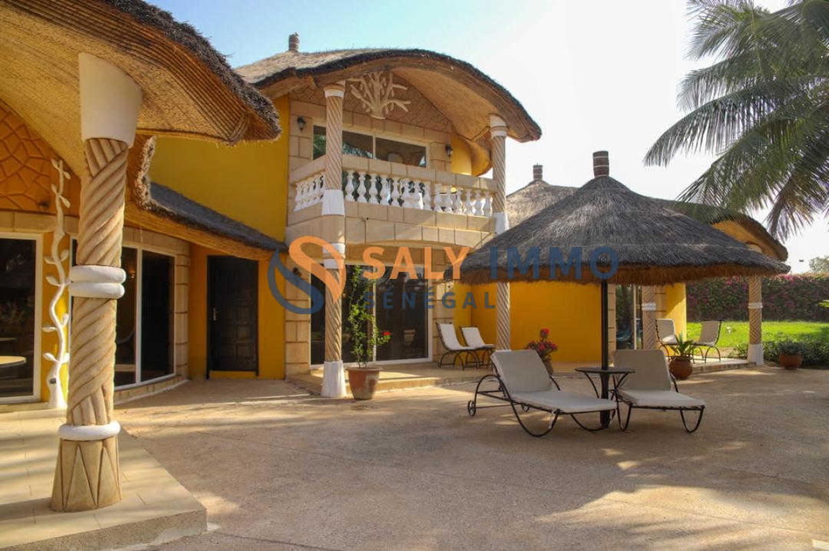 Nichée au coeur d'un quartier résidentiel paisible à Nguerigne, cette villa afro-contemporaine séduit par son style authentique et ses volumes généreux. Sur un terrain de 2 800 m², elle développe 300 m² habitables comprenant un vaste séjour lumineux, une cuisine fermée, et un bar central convivial ouvert sur la piscine. L?espace nuit se compose de 5 chambres, toutes avec salle de douche privative, offrant confort et intimité à chaque occupant. À l'extérieur, un studio indépendant ajoute une touche de flexibilité. Le grand jardin arboré, propice à de multiples aménagements, complète ce cadre de vie élégant et apaisant. Un bien rare, idéal pour une grande résidence familiale ou un projet d'hébergement de standing.